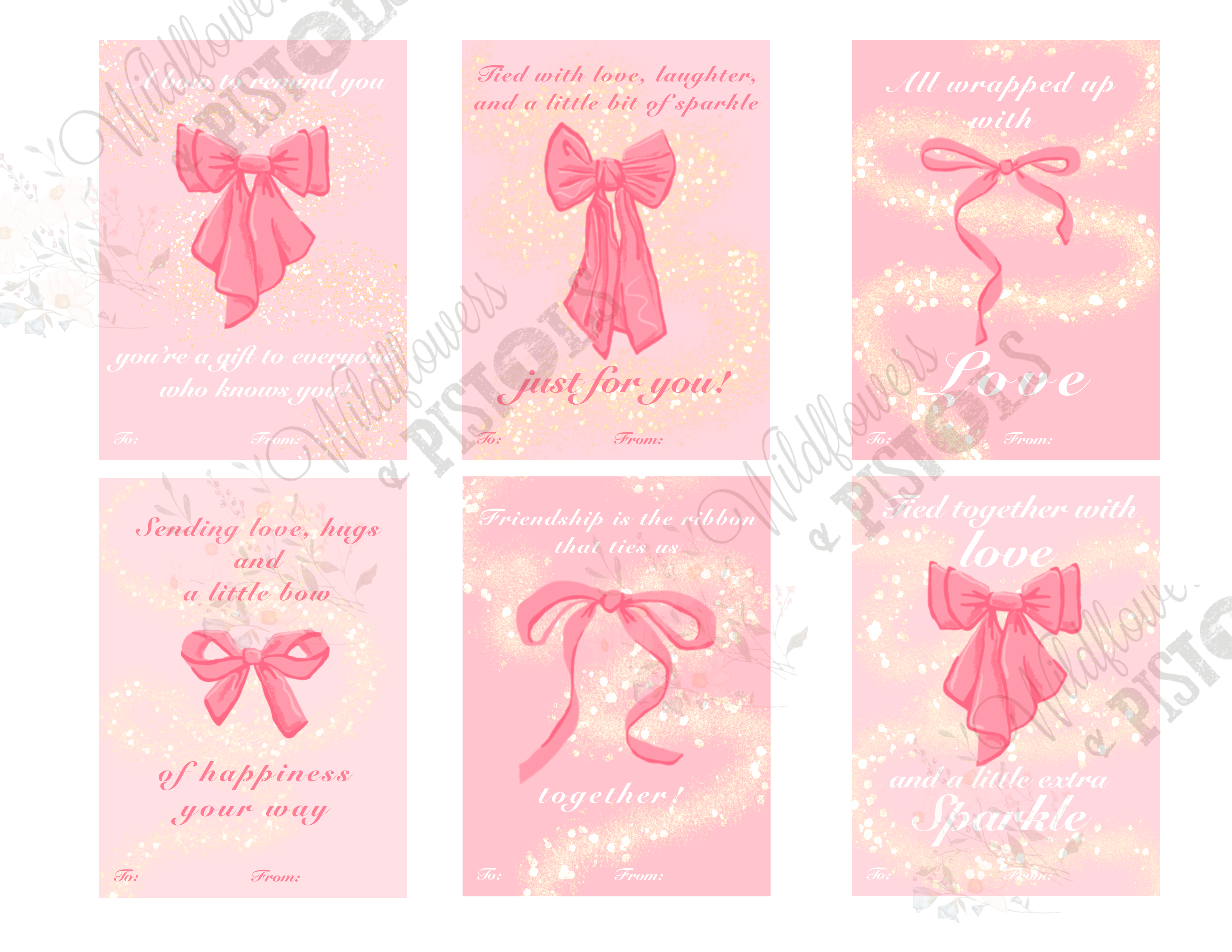 Pretty pink bows Valentine’s Day cards that are perfect for classroom parties!