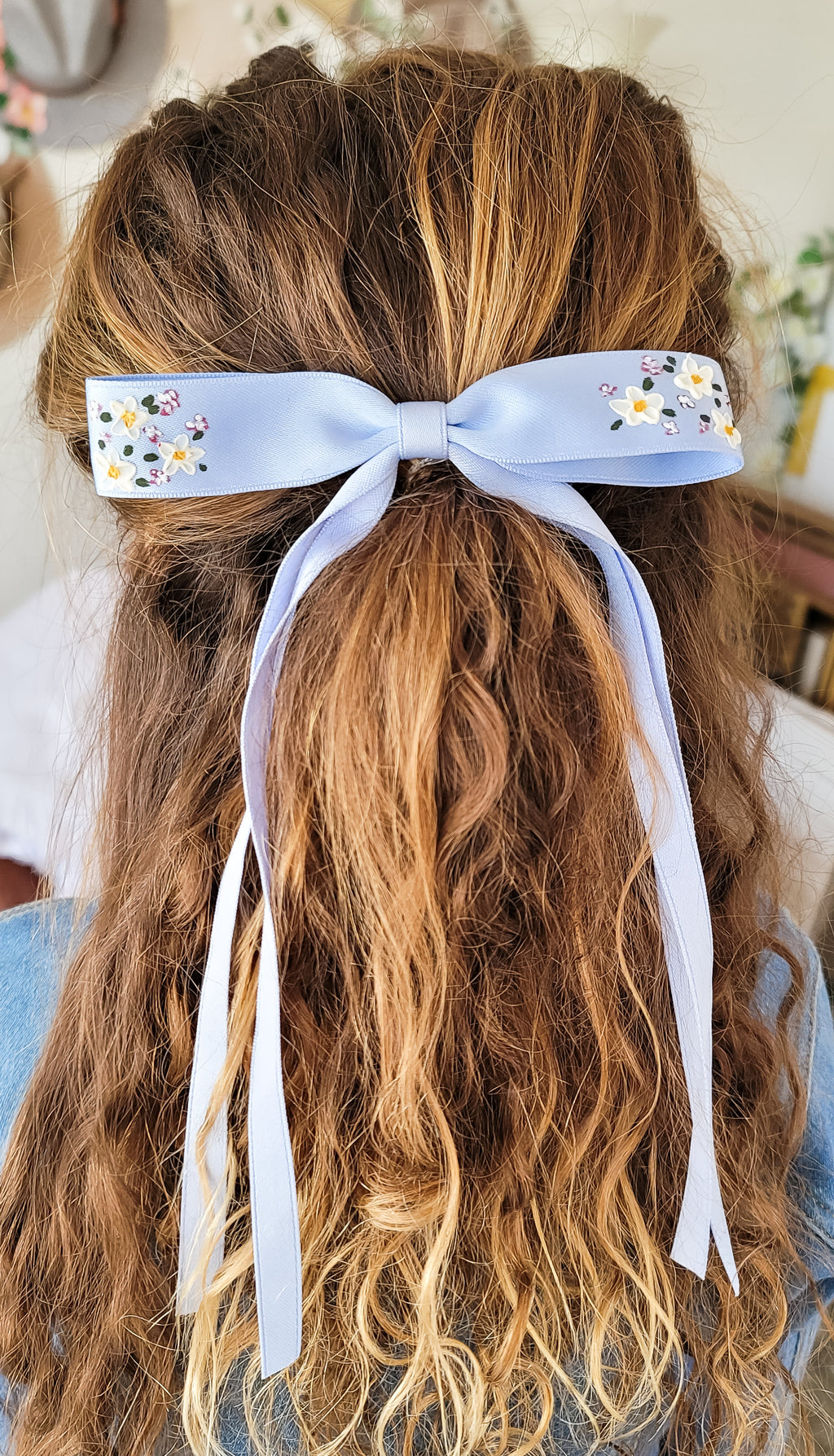 Light blue hair clip with beautiful hand painted flowers and claw clip.