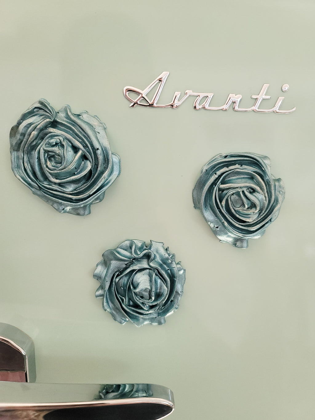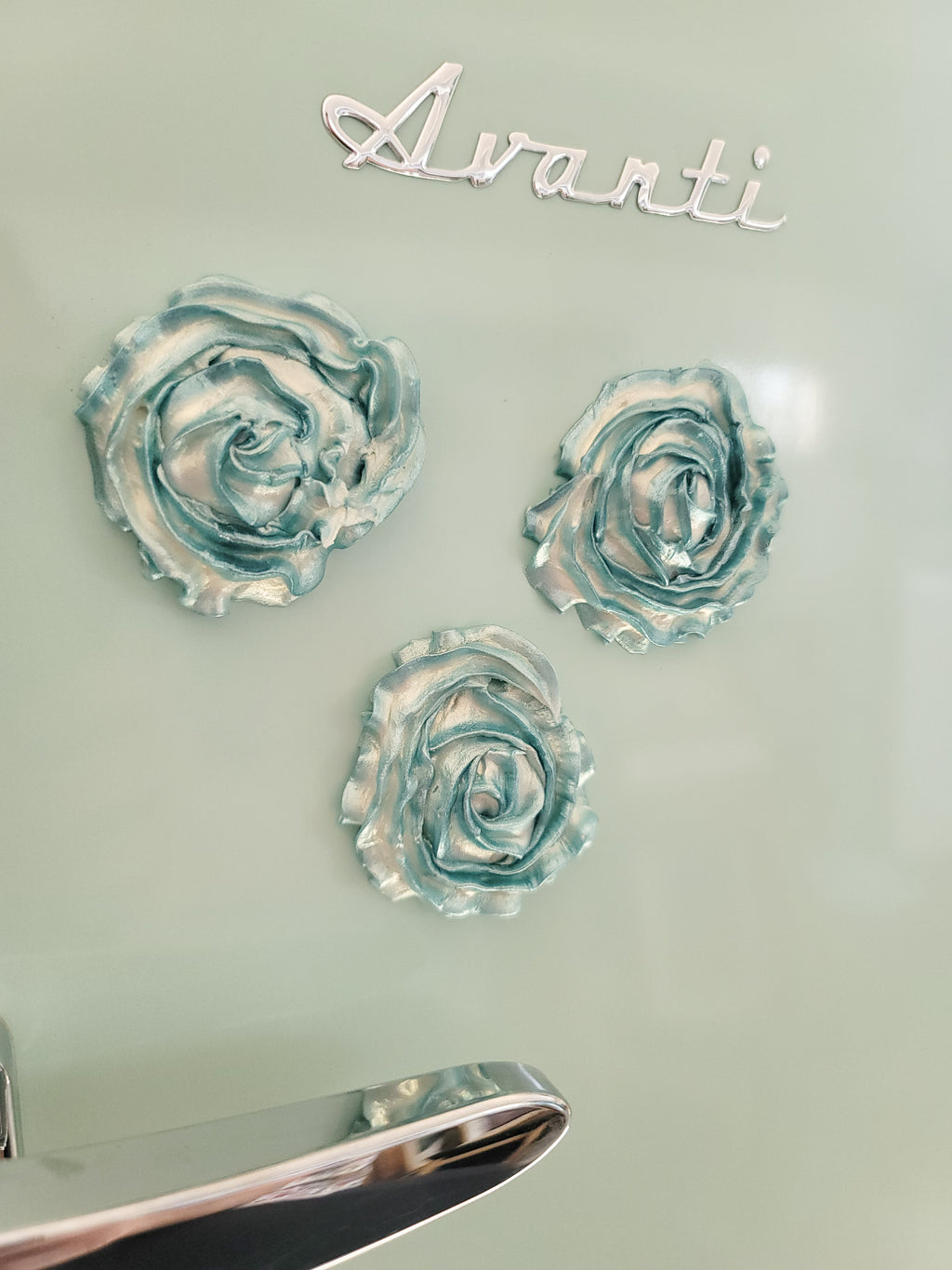 Rose magnets made from paint! Each one is unique! Although they are all similar in size, some may be slightly smaller or larger than others. Average size is about 2"
